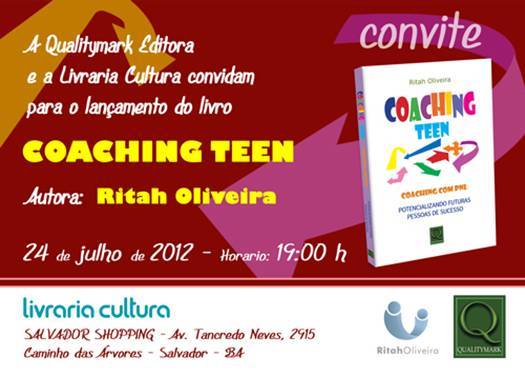 Na livraria Cultura do Salvador Shopping, na oportuniudade Ritah vai proferir palestra sobre Sucesso no auditório da referida livraria. Após receberá os convidados no salão da livraria para autográfos e coquetel.