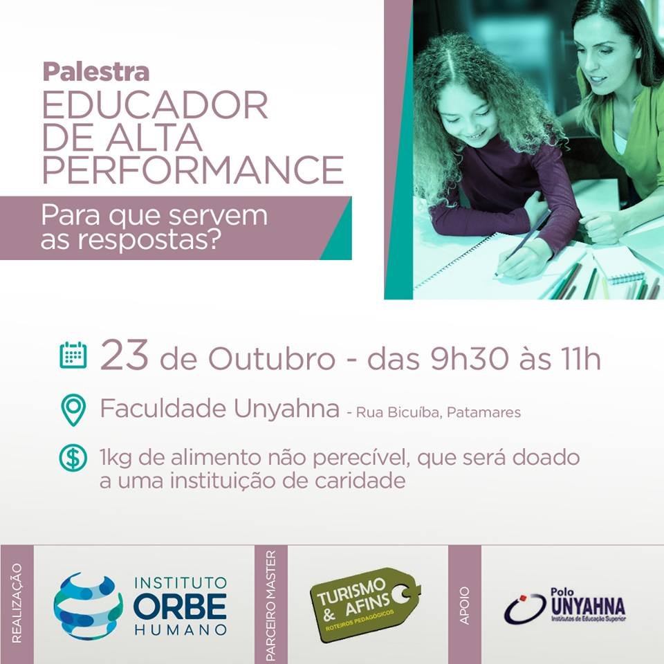 A escritoria Ritah Oliveira vai dialogar mediante palestra sobre a tematica da aprendizagem e o papel do educador, que está buscando responder a si mesmo sobre: Quem disse que lidar com o que é diferente é fácil? O educador de alta perfomance entende e acolhe o que é real, vê oportunidade de influenciar aquela realidade que está sendo deixada de lado. É perceber que o momento perfeito para começar algo é agora.
